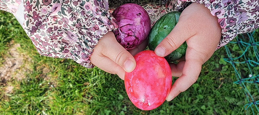 Am Morgen vor den Osterferien gab es im Garten der h13 viele bunte Ostereier zu entdecken.